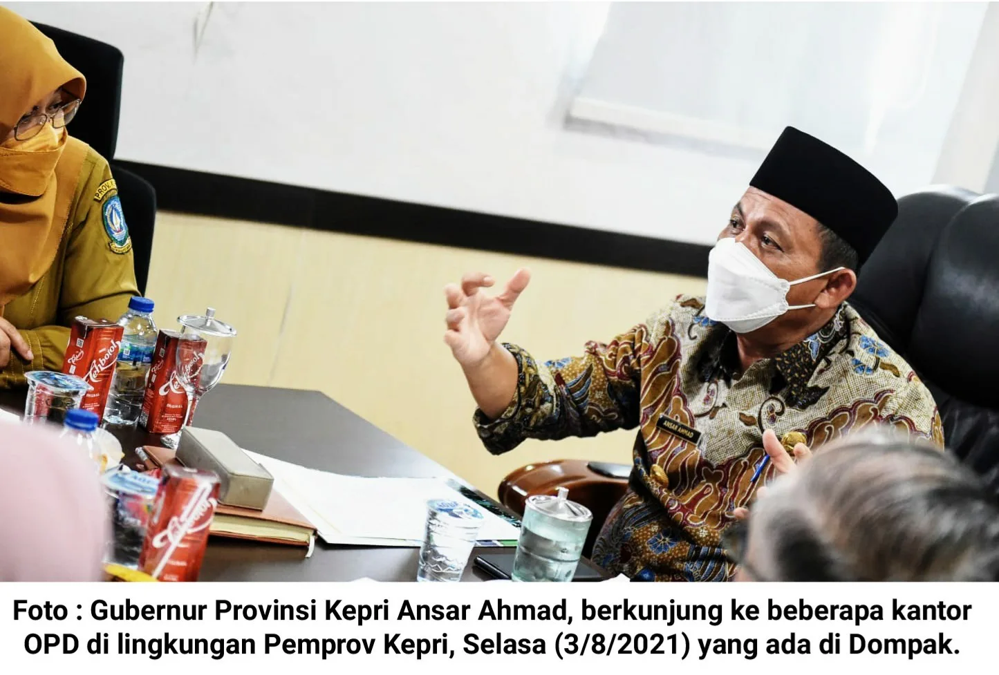 Tanjungpinang (Kepri), cMczone.com – Gubernur Provinsi Kepulauan Riau (Kepri) Ansar Ahmad, berkunjung ke beberapa kantor Organisasi Perangkat Daerah (OPD) di lingkungan Pemerintah Provinsi (Pemprov) Kepri, Selasa (3/8/2021) yang ada di Dompak.