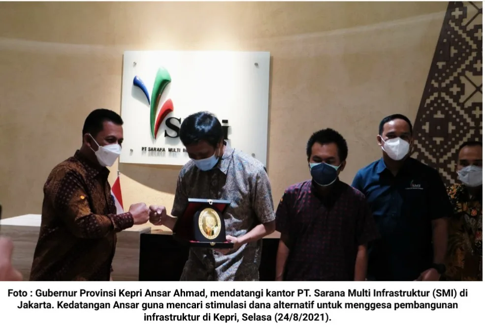 Jakarta, cMczone.com – Gubernur Provinsi Kepulauan Riau (Kepri) Ansar Ahmad, mendatangi kantor PT. Sarana Multi Infrastruktur (SMI) di Jakarta, Selasa (24/8/2021). Kedatangan Ansar guna mencari stimulasi dana alternatif untuk menggesa pembangunan infrastruktur di Kepri.