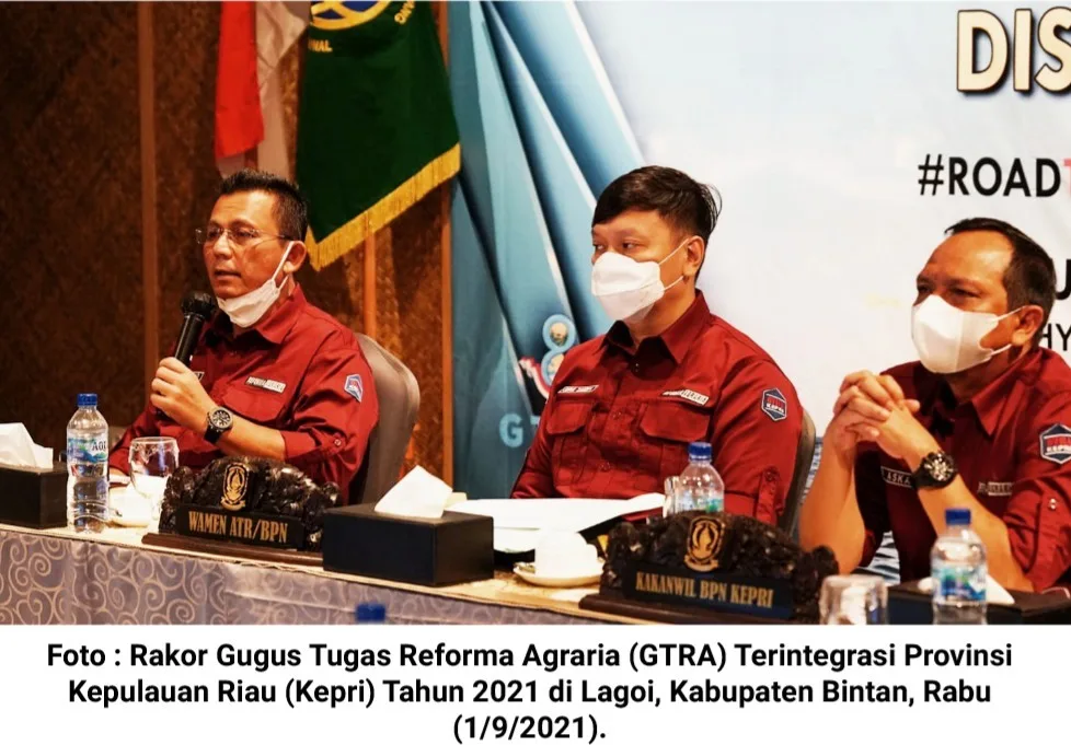 Gubernur Provinsi Kepri Ansar Ahmad hadir langsung bersama Wakil Menteri ATR/BPN Surya Tjandra dan Kakanwil ATR/BPN Kepri Askani, serta Kepala Kantor Staf Presiden (KSP) Moeldoko dan Kakanwil ATR/BPN se-Indonesia serta Tim GTRA se-Kepri hadir melalui video conference.