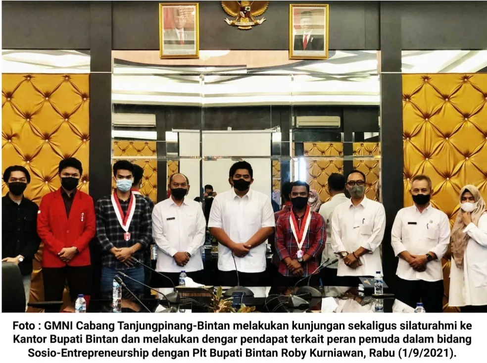cMczone.com – Gerakan Mahasiswa Nasional Indonesia (GMNI) Cabang Tanjungpinang-Bintan melakukan kunjungan sekaligus silaturahmi ke Kantor Bupati Bintan dan melakukan dengar pendapat terkait peran pemuda dalam bidang Sosio-Entrepreneurship, Rabu (1/9/2021).