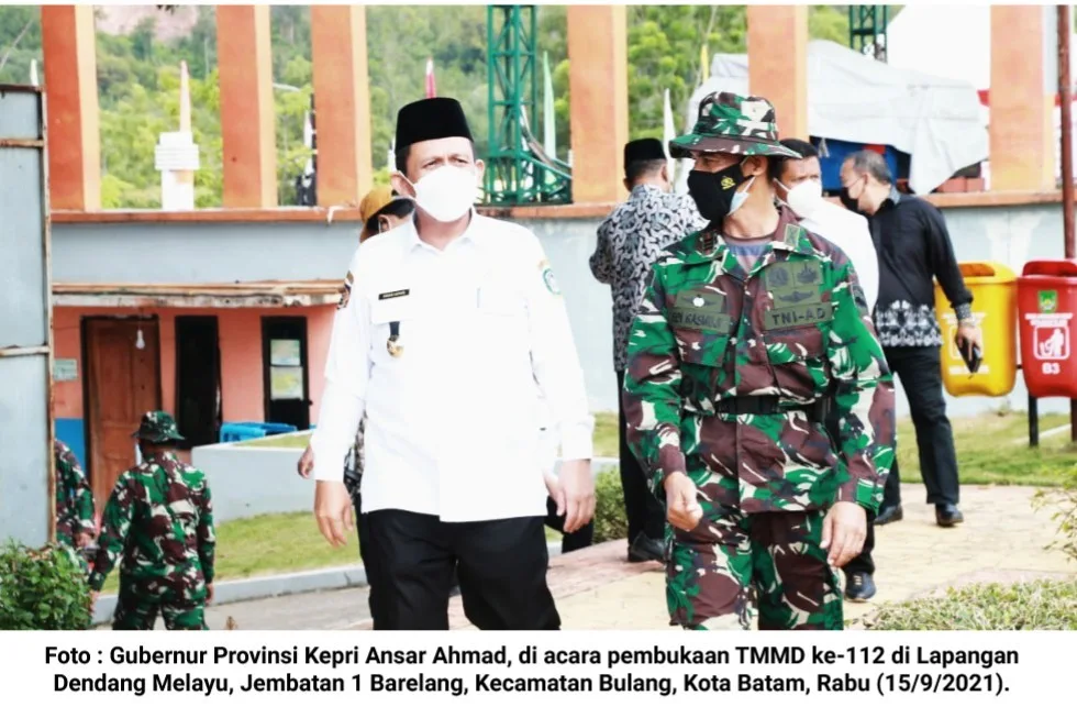 Hal tersebut disampaikan Ansar, saat membuka secara resmi TMMD ke-112 di Lapangan Dendang Melayu, Jembatan 1 Barelang, Kecamatan Bulang, Kota Batam, Rabu (15/9/2021).