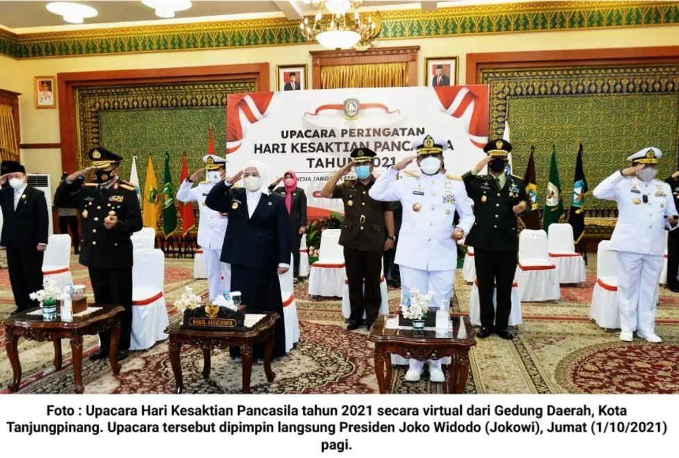 cMczone.com – Wakil Gubernur Provinsi Kepulauan Riau (Kepri) Marlin Agustina, menghadiri upacara Hari Kesaktian Pancasila tahun 2021 secara virtual dari Gedung Daerah, Kota Tanjungpinang. Marlin mengikuti upacara yang dipimpin langsung Presiden Joko Widodo (Jokowi), pada Jumat (1/10/2021) pagi.