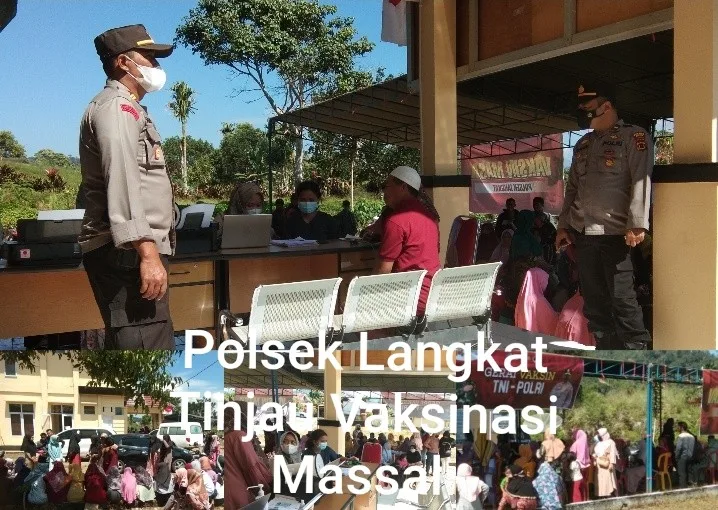 Merangin, (cmczone.com)- Minggu 3/10/21 pukul 08.30 pagi, Kapolsek Langkat Iptu H Sitepu SE memantau lansung vaksinasi massal di Muara Madras, kecamatan Jangkat kabupaten Merangin.