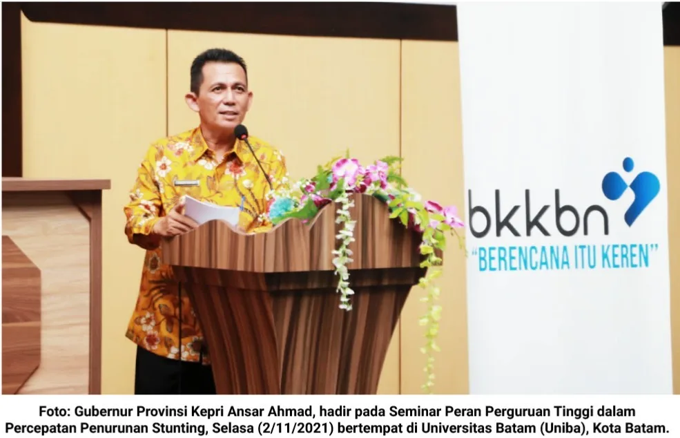 Penegasan itu disampaikan Ansar, saat  hadir pada Seminar Peran Perguruan Tinggi dalam Percepatan Penurunan Stunting, Selasa (2/11/2021) bertempat di Universitas Batam (Uniba), Kota Batam.