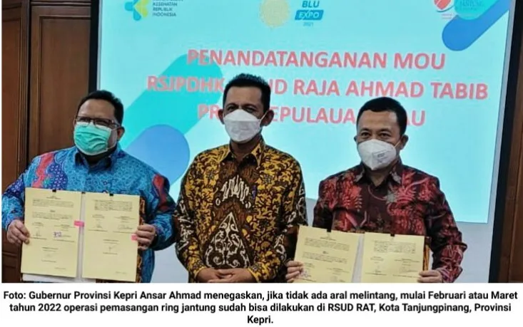 cMczone.com – Gubernur Provinsi Kepulauan Riau (Kepri) Ansar Ahmad menegaskan, jika tidak ada aral melintang, mulai Februari atau Maret tahun 2022 operasi pemasangan ring jantung sudah bisa dilakukan di Rumah Sakit Umum Daerah (RSUD) Raja Ahmad Thabib (RAT), KM 8 Atas, Kota Tanjungpinang, Provinsi Kepri.