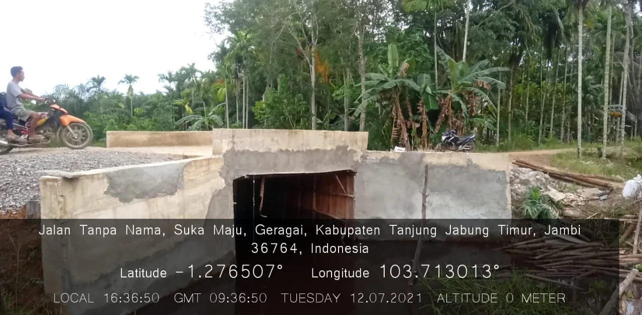 Tanjabtim, cMczone.com – Kerusakan Box Culvert di Rt 11 Desa Suka Maju,Kec Geragai, Kab Tanjabtim, yang di Kerjakan oleh pihak Rekanan CV. Zahara Sabak Timur. Perbaikan tersebut di kerjakan hanya dengan waktu satu hari, dari pantauan Awak Media di Lapangan, seakan Pekerjaan tersebut asal jadi. Menurut keterangan Kadus Sukasari,Desa Suka Maju, saat di Konfirmasi Awak Media Via Telepon yang rumahnya tidak jauh dari bangunan box culvert tersebut mengatakan, pihak rekanan tidak ada kasih tahu terkait perbaikan box culvert di hari Jum’at (03/12) kemarin.