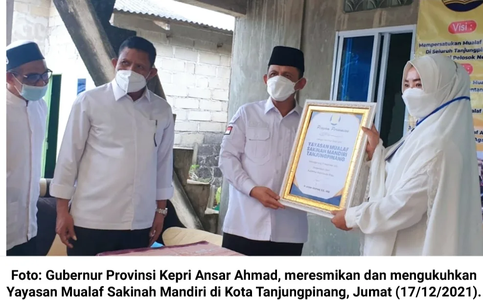 Tanjungpinang, cMczone.com – Gubernur Provinsi Kepulauan Riau (Kepri) Ansar Ahmad mengatakan, pembinaan terhadap berbagai lapisan masyarakat di Kepri harus terus dilanjutkan dan dikembangkan. Termasuk diantaranya adalah pembinaan kelompok mualaf, yang pada Jum’at (17/12/2021) ini, Ansar telah meresmikan dan mengukuhkan Yayasan Mualaf Sakinah Mandiri di Kota Tanjungpinang.