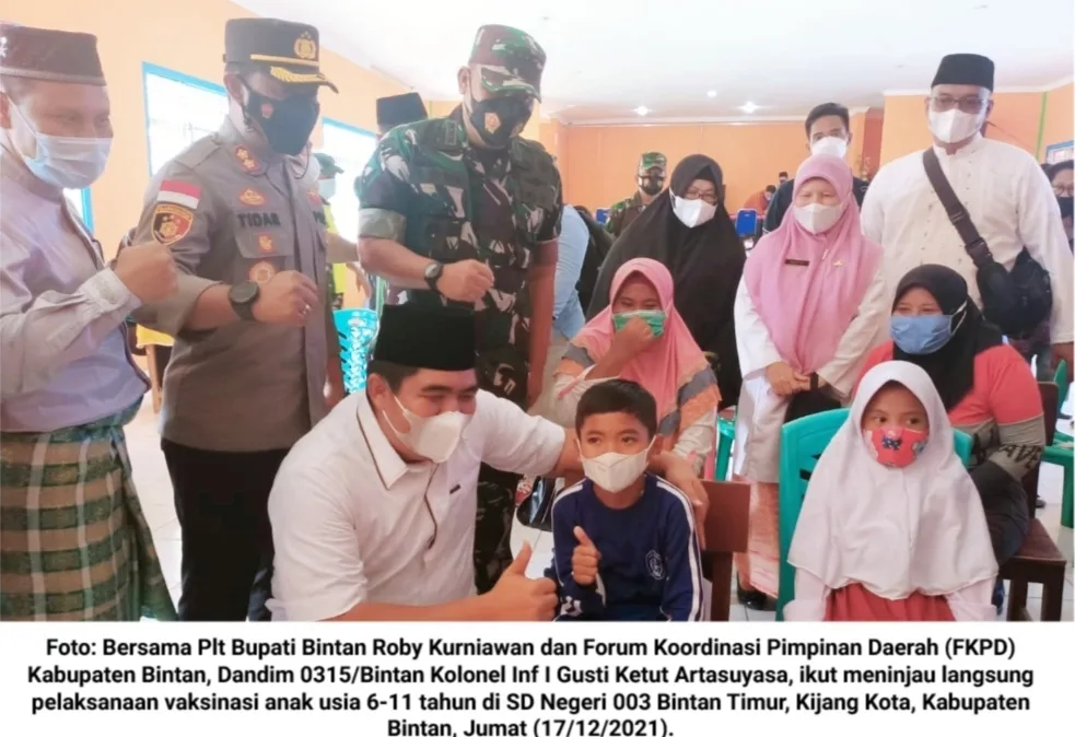 Dan pelaksanaan vaksinasi Covid-19 untuk anak usia 6-11 tahun telah dilaksanakan secara serentak, yang dimulai hari ini, Jumat (17/12/2021) di seluruh Kabupaten/Kota se-Provinsi Kepulauan Riau (Kepri).