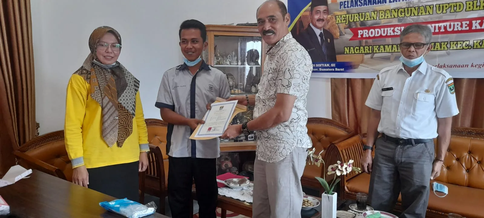 Pelatihan Klaster Bangunan Bidang Furniture dan Laminasi memang sudah menjadi ” passion ” bagi sebagian masyarakat di Kecamatan Kamang Magek, karena daerah tersebut merupakam salah satu sentra penghasil produk furniture berkualitas di Sumatera Barat.