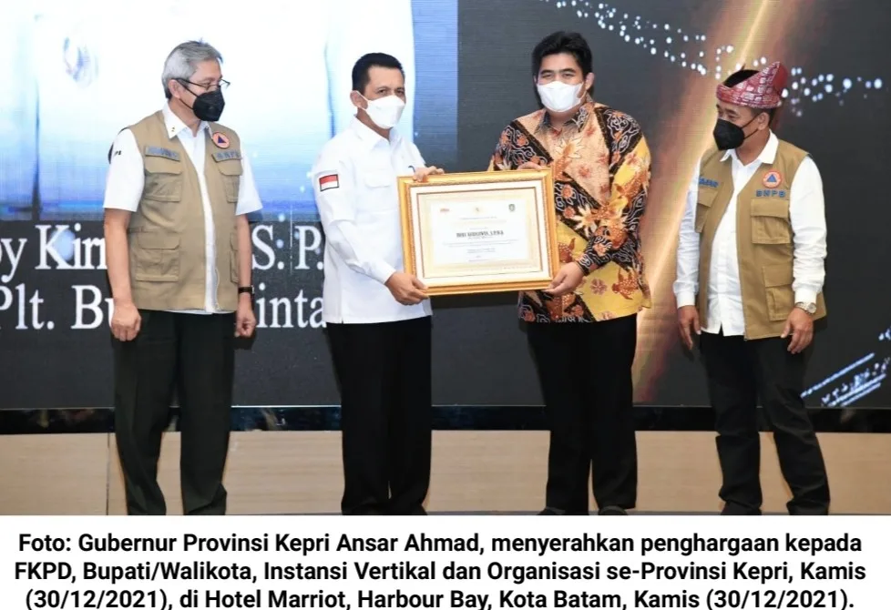 Batam, cMczone.com – Gubernur Provinsi Kepulauan Riau (Kepri) Ansar Ahmad, menyerahkan penghargaan kepada Forum Koordinasi Pimpinan Daerah (FKPD), Bupati/Walikota, Instansi Vertikal dan Organisasi se-Provinsi Kepri, Kamis (30/12/2021), di Hotel Marriot, Harbour Bay, Kota Batam, Kamis (30/12/2021).