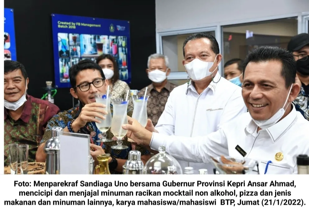 Bahkan, Sandiaga bersama Ansar, berkesempatan mencicipi dan menjajal minuman racikan cocktail non alkohol, pizza dan jenis makanan dan minuman lainnya, karya mahasiswa/mahasiswi BTP.