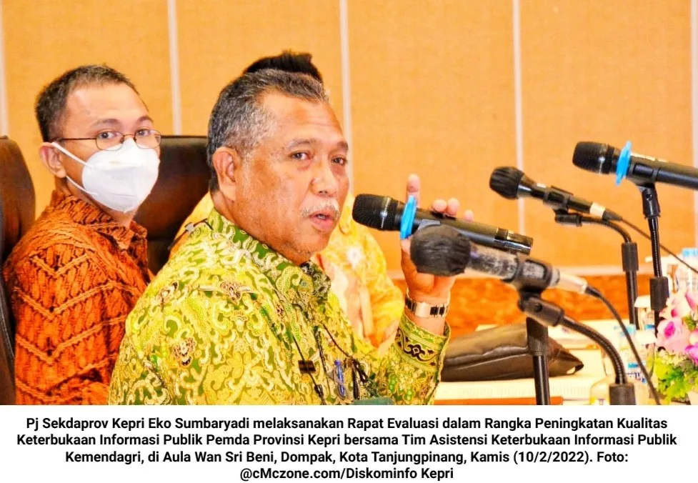 Mencapai hal tersebut, melalui Penjabat Sekretaris Daerah Pemprov Kepri Eko Sumbaryadi dan Kepala Dinas Komunikasi dan Informatika (Kominfo) Provinsi Kepri Hasan, melaksanakan Rapat Evaluasi dalam Rangka Peningkatan Kualitas Keterbukaan Informasi Publik Pemerintah Daerah (Pemda) Provinsi Kepri bersama Tim Asistensi Keterbukaan Informasi Publik Kementerian Dalam Negeri (Kemendagri), Kamis (10/2/2022) di Aula Wan Sri Beni, Dompak, Kota Tanjungpinang.