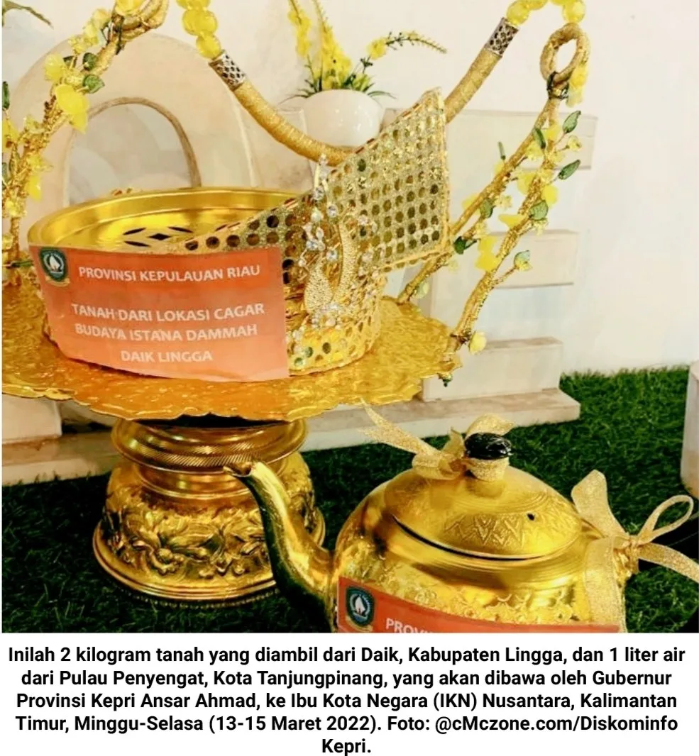 “Sesuai masukan dan saran dari para tetua adat di Kepri, kita putuskan membawa tanah yang kita ambil dari Istana Damnah Daik-Lingga, dan air dari Sumur Balai Adat Pulau Penyengat Indera Sakti,” ungkap Ansar, Minggu (13/3/2022).