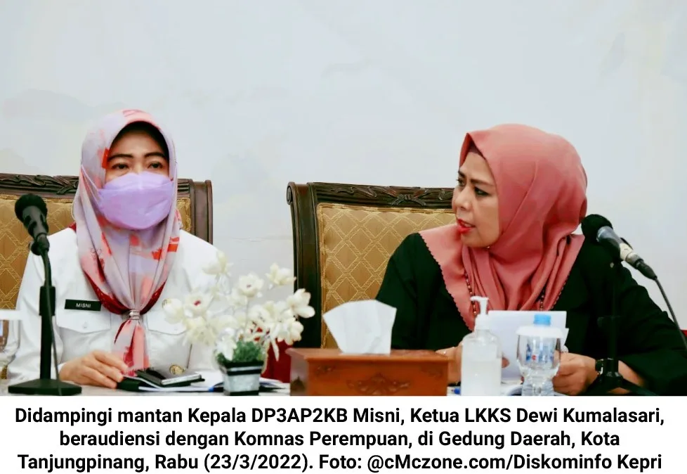 Tanjungpinang, cMczone.com – Ketua Lembaga Koordinasi Kesejahteraan Sosial (LKKS) Dewi Kumalasari, menerima audiensi Komisi Nasional Anti Kekerasan Terhadap Perempuan (Komnas Perempuan) di Gedung Daerah, Kota Tanjungpinang, Rabu (23/3/2022).