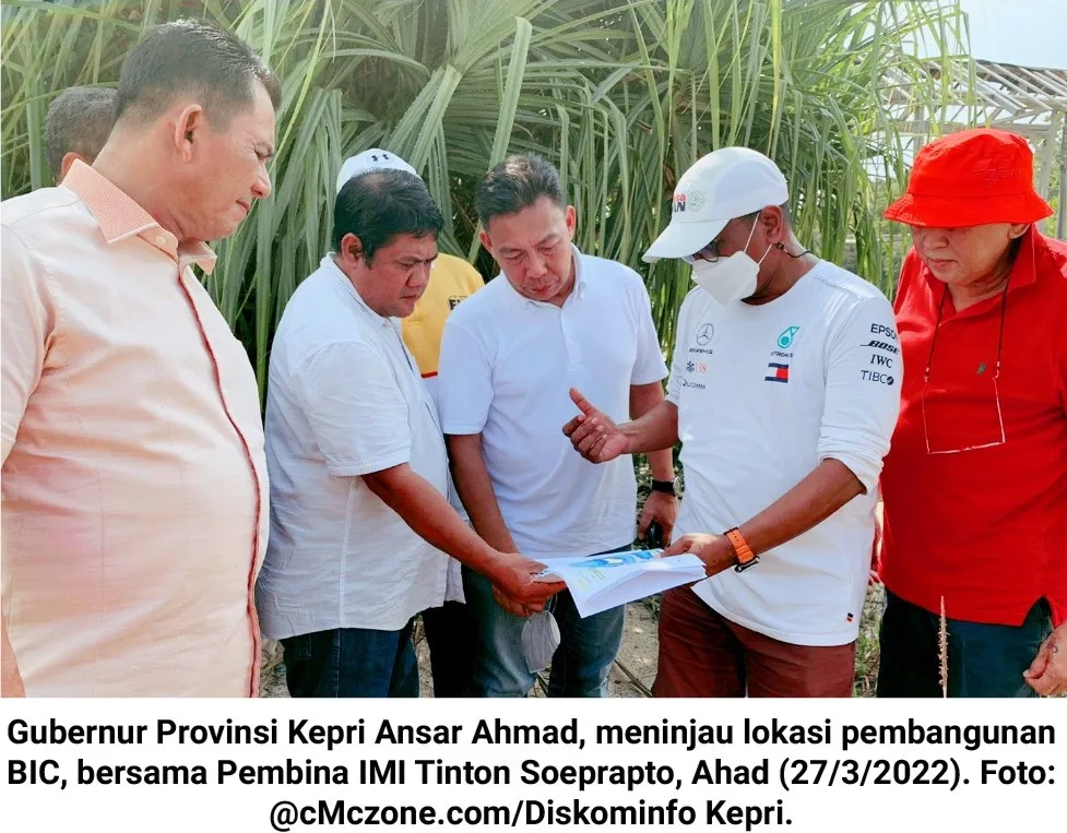 Setelah menentukan titik koordinat pembangunan dan beberapa kali melakukan rapat teknis bersama Ketua Umum Ikatan Motor Indonesia (IMI) Bambang Soesatyo (Bamsoet) beberapa waktu sebelumnya, Ansar kembali meninjau lokasi pembangunan BIC, Ahad (27/3/2022), bersama Pembina IMI Tinton Soeprapto.