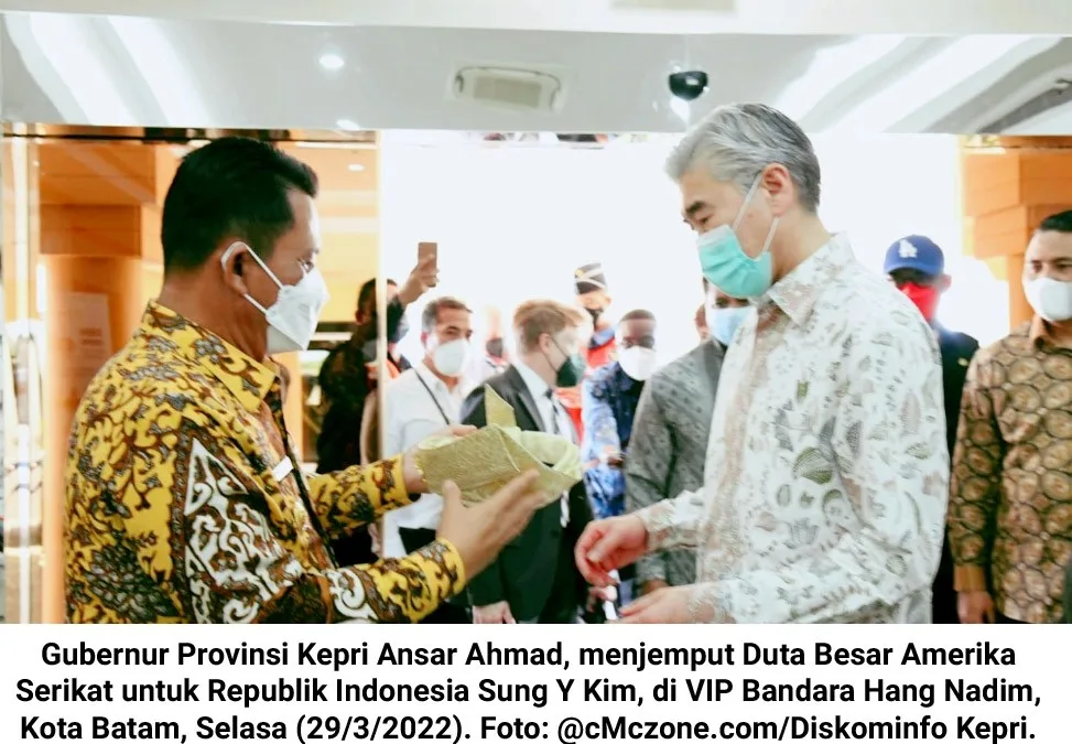 cMczone.com – Gubernur Provinsi Kepulauan Riau (Kepri) Ansar Ahmad, menjemput langsung Duta Besar Amerika Serikat untuk Republik Indonesia Sung Y Kim, di VIP Bandara Hang Nadim, Kota Batam, Selasa (29/3/2022).
