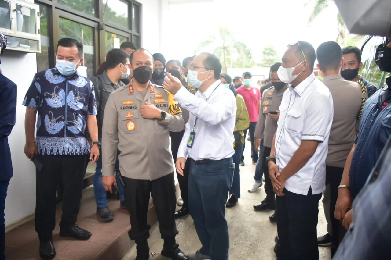 Kedatangan Ditektur Utama PT. Pertamina disambut oleh Forkopimda Propinsi Jambi, sebelum melanjutkan rangkaian kegiatan kunjungannya di Jambi, Dirut Pertamina dan Forkopimda menerima pemaparan dari Dir Reskrimsus Polda Jambi Kombes Pol. Christian Tory tentang SPBU di Jambi.