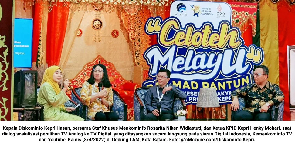 Hal itu disampaikan Hasan, saat dialog sosialisasi peralihan TV Analog ke TV Digital, yang ditayangkan secara langsung pada siaran Digital Indonesia, Kemenkominfo TV dan YouTube, bersama Staf Khusus Menkominfo Rosarita Niken Widiastuti, dan Ketua Komisi Penyiaran Indonesia Daerah (KPID) Kepri Henky Mohari, Kamis (8/4/2022) di Gedung LAM (Lembaga Adat Melayu), Kota Batam.