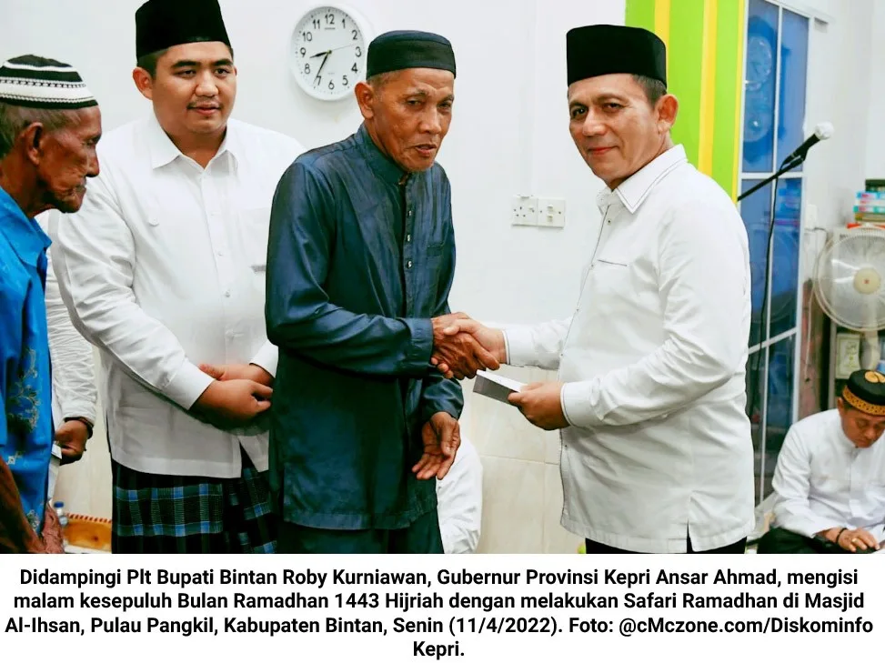 cMczone.com – Gubernur Provinsi Kepulauan Riau (Kepri) Ansar Ahmad, mengisi malam kesepuluh Bulan Ramadhan 1443 Hijriah dengan melakukan Safari Ramadhan di Pulau Pangkil, Kabupaten Bintan, Senin (11/4/2022).