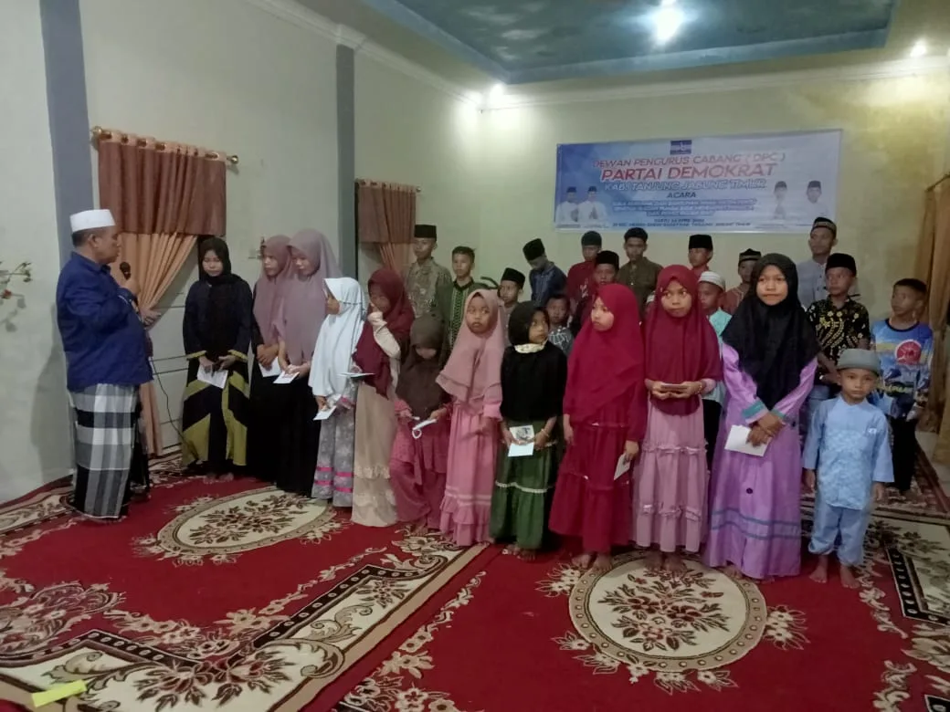 Untuk memuliakan hari kemenangan tersebut, agar dapat di Rasakan bagi Anak- anak yang kurang mampu. partai yang Berlambangkan Bintang Mercy, ( Partai Demokrat) Kabupaten Tanjung Jabung Timur, melakukan kegiatan menyantuni anak- anak yang Kurang Mampu agar dapat merasakan kegembiraan di hari Raya Idul Fitri(Hari kemenangan).