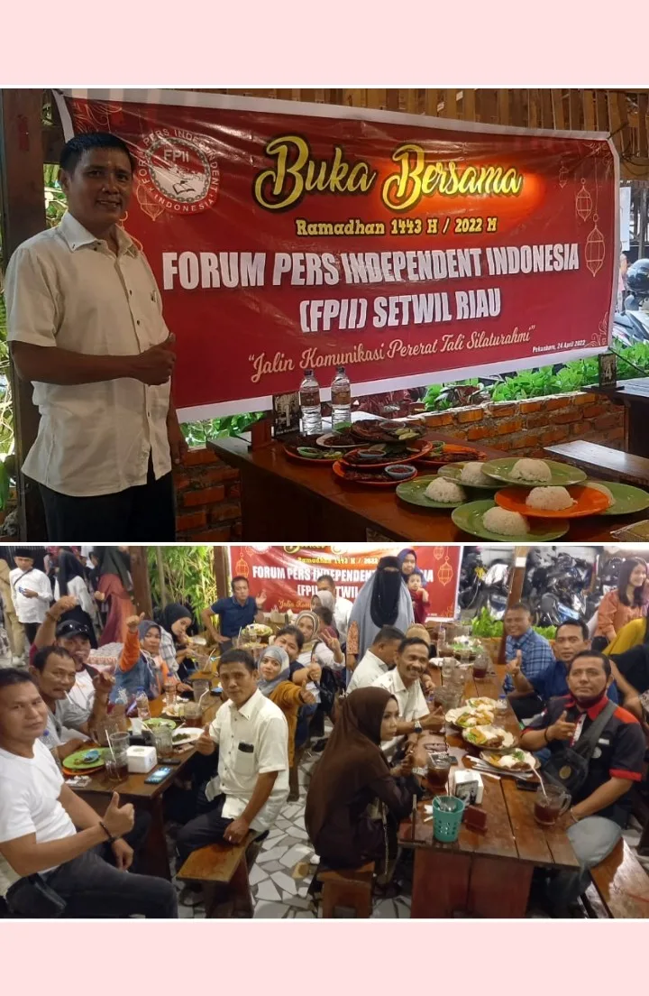 Kegiatan buka bersama yang diadakan Forum Pers Independent Indonesia (FPII) Setwil Riau ini mengangkat tema ” Jalin Komunikasi Pererat Tali Silaturrahmi “, Acara ini dilaksanakan dengan tetap mengikuti protokol kesehatan sesuai program pemerintah guna memutus penyebaran Covid-19.