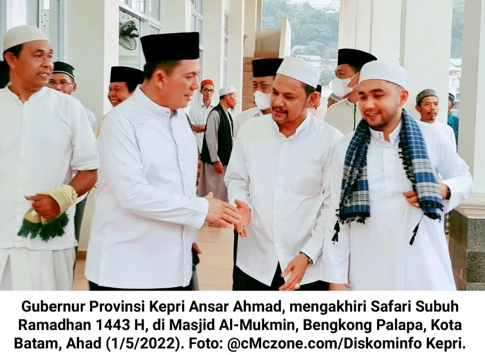 cMczone.com – Gubernur Provinsi Kepulauan Riau (Kepri) Ansar Ahmad, mengakhiri Safari Subuh Ramadhan 1443 H, di Masjid Al-Mukmin, Bengkong Palapa, Kota Batam, Ahad (1/5/2022).