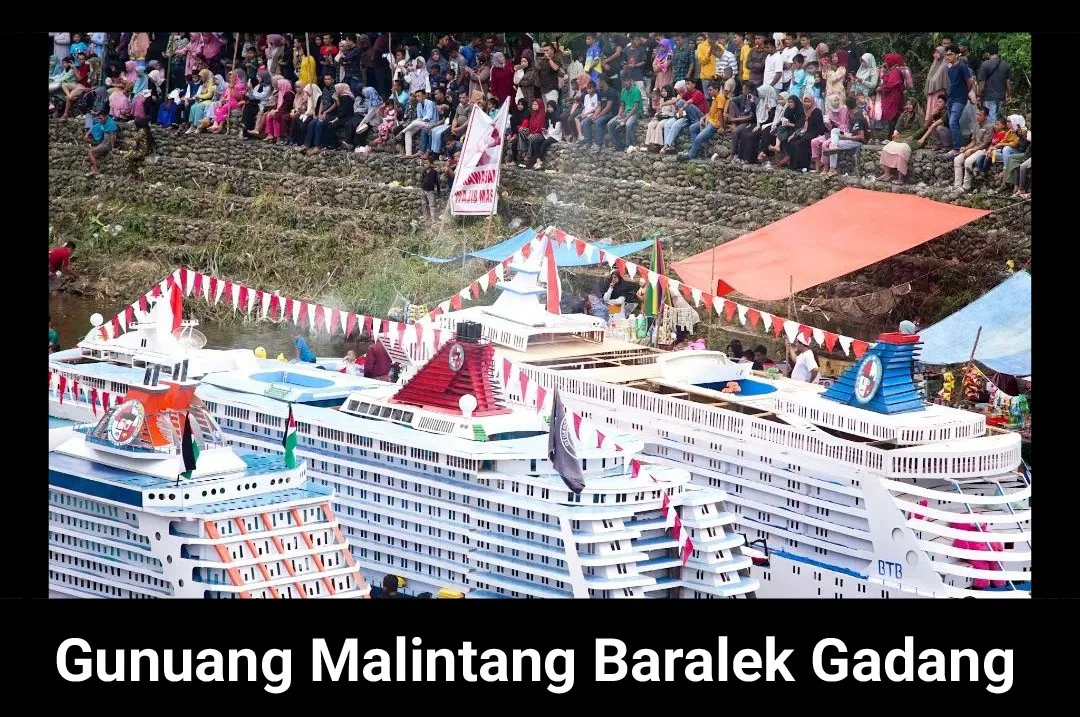 Lima buah kajang (perahu) yang mewakili masing-masih jorong di daerah tersebut, berlayar di Batang Maek yang membelah Nagari Gunuang malintang, Kecamatan Pangkalan Koto Baru, Kabupaten Limapuluh Kota.