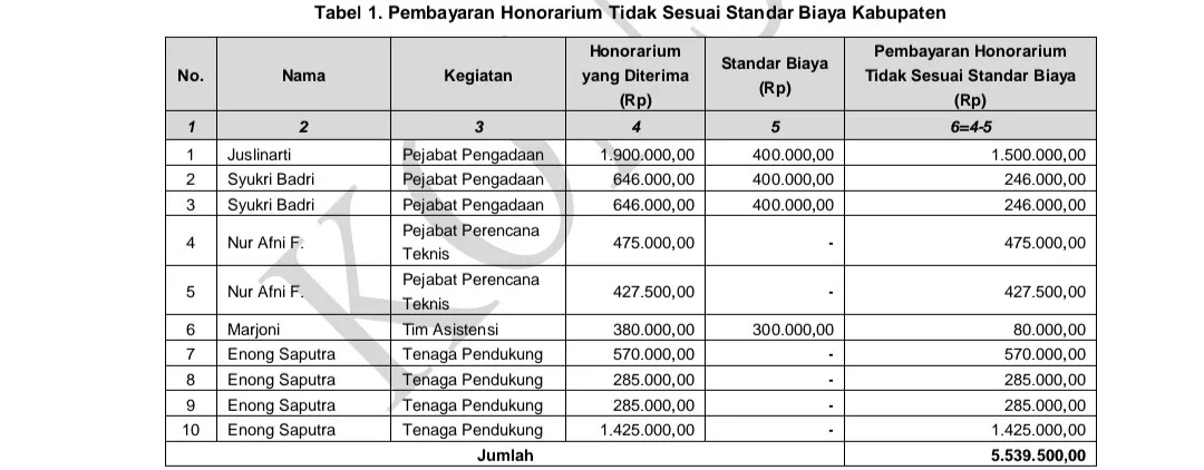 Dari hasil pemeriksaan terhadap realisasi belanja Honorarium dan reviu dokumen pertanggung jawaban yang media rangkum berikut: