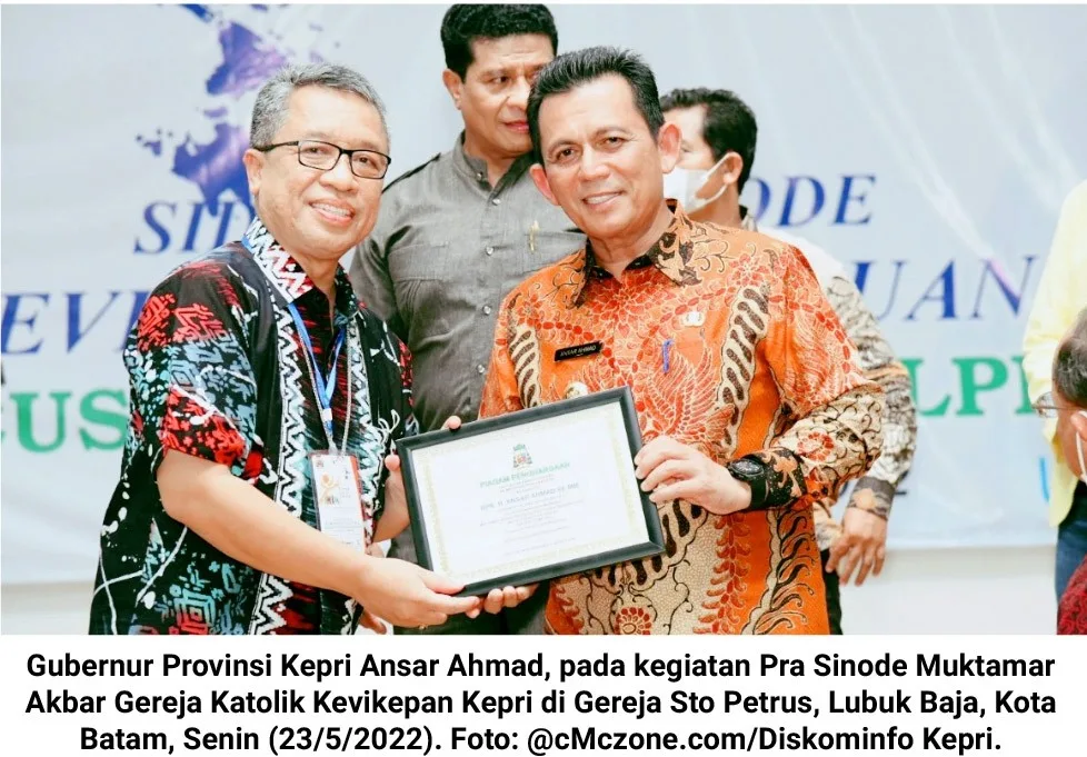 Ajakan yang disampaikan oleh Ansar dalam pidatonya pada kegiatan Pra Sinode Muktamar Akbar Gereja Katolik Kevikepan Kepri di Gereja Sto Petrus, Lubuk Baja, Kota Batam, Senin (23/5/2022).