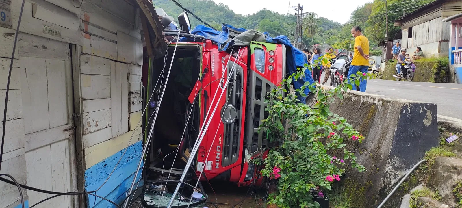 cMczone.com- Mobil tangki PT Pertamina Nomor Polisi (Nopol) BK 9504 SH nyungsep, sehingga menimpa rumah warga diijalan lintas Sibolga – Tarutung, Kelurahan Hutabarangan, Kecamatan Sibolga Utara, Kota Sibolga, Provinsi Sumatera Utara (Sumut). Pada hari Jum’at (3/6/2022), pukul 05.30 wib.