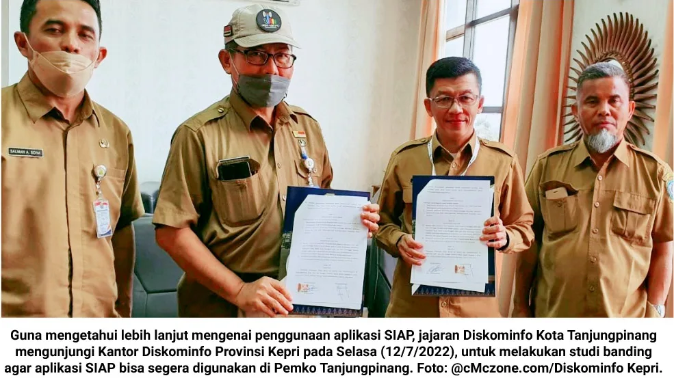 Adapun dalam kerja sama tersebut, antara Diskominfo Provinsi Kepri dan Diskominfo Kota Tanjungpinang bersepakat untuk saling mendukung dalam pengembangan aplikasi SIAP di Pemko Tanjungpinang.