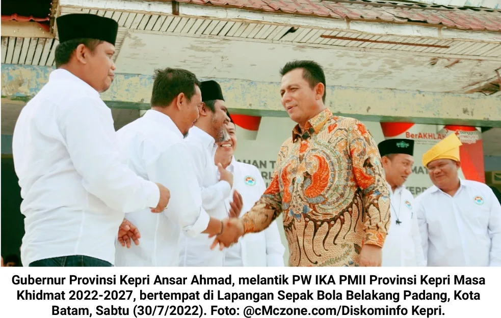 cMczone.com – Gubernur Provinsi Kepulauan Riau (Kepri) Ansar Ahmad, melantik Pengurus Wilayah Ikatan Keluarga Alumni Pergerakan Mahasiswa Islam Indonesia (PW IKA PMII) Provinsi Kepri Masa Khidmat 2022-2027, bertempat di Lapangan Sepak Bola Belakang Padang, Kota Batam, Sabtu (30/7/2022).
