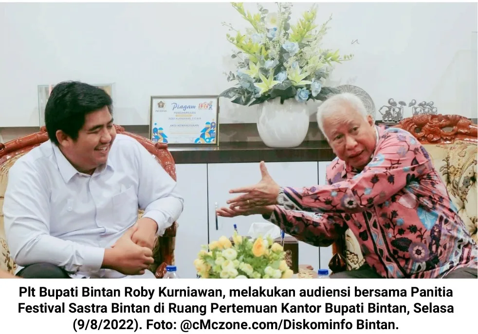 “Selain pariwisata, Bintan punya segudang budaya dan sejarah yang menjadi icon tersendiri bagi Bintan,” kata Roby, saat melakukan audiensi bersama Panitia Festival Sastra Bintan di Ruang Pertemuan Kantor Bupati Bintan, Selasa (9/8/2022).