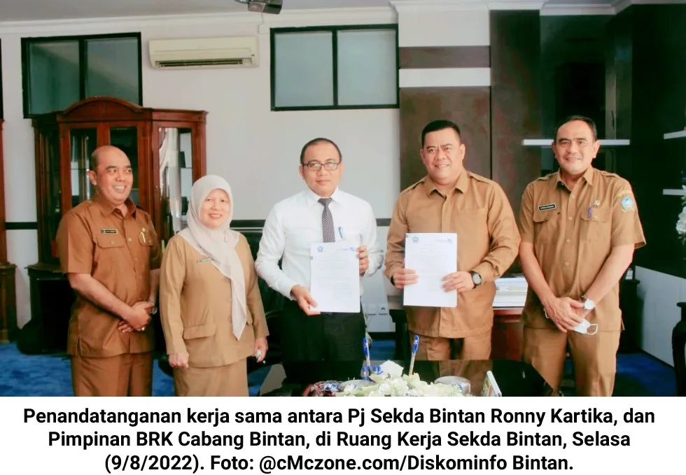 Hal ini ditandai dengan penandatanganan kerja sama antara Penjabat (Pj) Sekretaris Daerah (Sekda) Bintan Ronny Kartika, dan Pimpinan BRK Cabang Bintan, di Ruang Kerja Sekda Bintan, Selasa (9/8/2022).