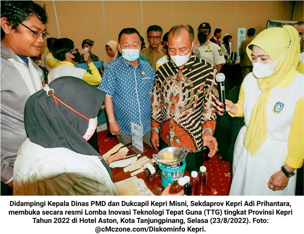 Perlombaan Inovasi TTG diselenggarakan oleh Pemerintah Provinsi (Pemprov) Kepri melalui Dinas Pemberdayaan Masyarakat dan Desa, Kependudukan dan Catatan Sipil (Dinas PMD dan Dukcapil) Provinsi Kepri ini dilaksanakan 23-25 Agustus 2022.