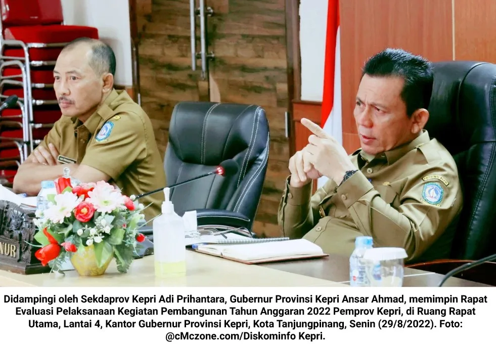 cMczone.com – Gubernur Provinsi Kepulauan Riau (Kepri) Ansar Ahmad, kembali menekankan kepada seluruh jajaran Kepala Organisasi Perangkat Daerah (OPD) di Lingkungan Pemerintah Provinsi (Pemprov) Kepri untuk rutin melaksanakan rapat evaluasi internal progres pelaksanaan APBD Tahun Anggaran 2022.