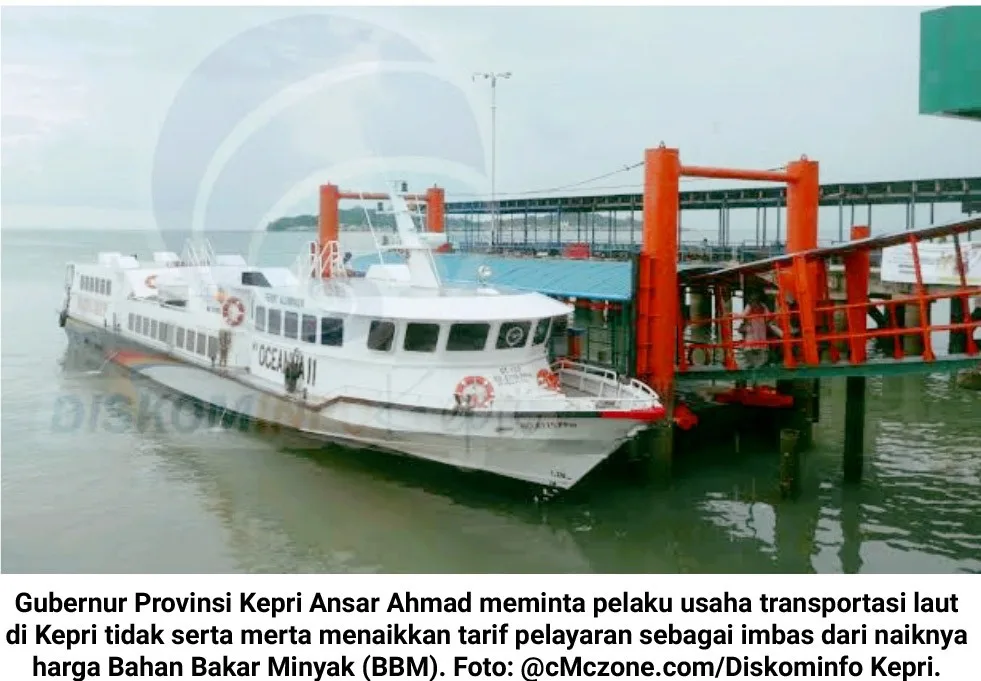 cMczone.com – Gubernur Provinsi Kepulauan Riau (Kepri) Ansar Ahmad meminta pelaku usaha transportasi laut di Kepri tidak serta merta menaikkan tarif pelayaran sebagai imbas dari naiknya harga Bahan Bakar Minyak (BBM).