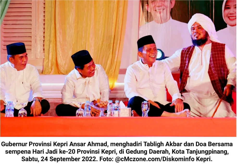 cMczone.com – Gubernur Provinsi Kepulauan Riau (Kepri) Ansar Ahmad, menghadiri Tabligh Akbar dan Doa Bersama sempena Hari Jadi ke-20 Provinsi Kepri, di Gedung Daerah, Kota Tanjungpinang, Sabtu, 24 September 2022.