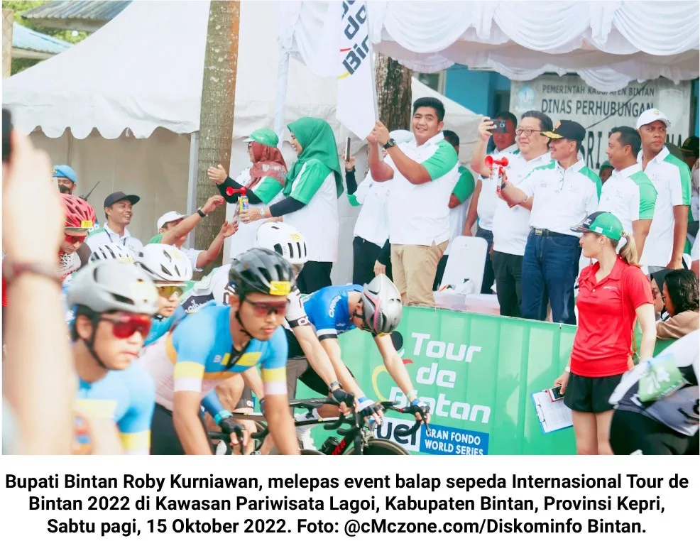 cMczone.com – Bupati Bintan Roby Kurniawan, melepas peserta balap sepeda Internasional Tour de Bintan 2022 di Kawasan Pariwisata Lagoi, Kabupaten Bintan, Provinsi Kepulauan Riau (Kepri), Sabtu pagi, 15 Oktober 2022.