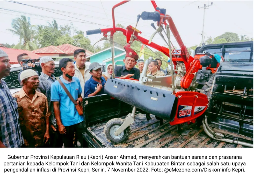 Ansar pada kesempatan itu, menyerahkan bantuan sarana dan prasarana pertanian kepada Kelompok Tani (Poktan) dan Kelompok Wanita Tani (KWT) Kabupaten Bintan sebagai salah satu upaya pengendalian inflasi di Provinsi Kepri.