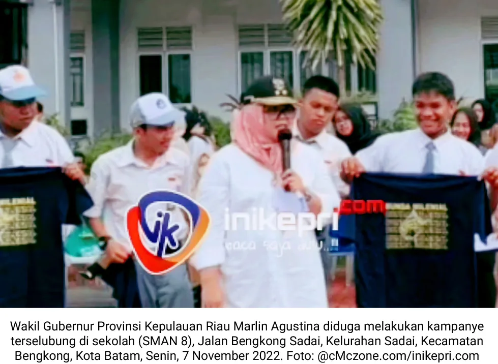 cMczone.com – Wakil Gubernur Provinsi Kepulauan Riau (Kepri) Marlin Agustina diduga melakukan kampanye terselubung di sekolah (SMAN 8), Jalan Bengkong Sadai, Kelurahan Sadai, Kecamatan Bengkong, Kota Batam, Senin, 7 November 2022.