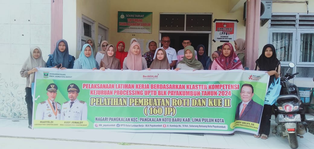 cMczone.com, Kab. Limapuluh Kota, Sumbar– Unit Pelaksana teknis dinas (UPTD) balai latihan kerja (BLK) Payakumbuh Disnaketrans Sumbar membuka secara resmi pelatihan pembuatan roti dan kue tahap dua di Nagari Pangkalan, Kecamatan Pangkalan Koto Baru, Kabupaten Limapuluh Kota.