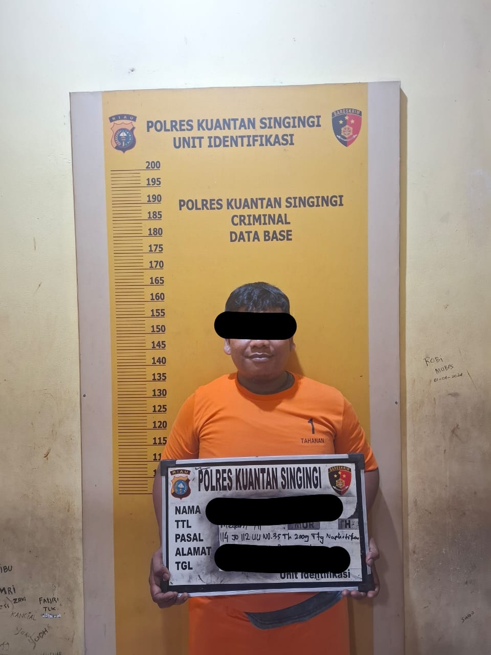 Tersangka yang berinisial AS (32) ditangkap saat sedang berjalan menuju rumahnya di Desa Sungai Langsat sekitar pukul 16.00 WIB. Tim Mata Elang, yang dipimpin oleh Kasat Res Narkoba Polres Kuansing, AKP Novris H. Simanjuntak, S.H., M.H., sebelumnya telah melakukan penyelidikan di lokasi tersebut sejak siang hari.