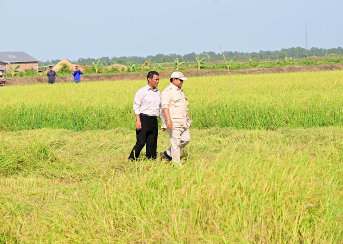 Prabowo nampak melihat secara langsung petani dengan cermat mempersiapkan lahan agar optimal untuk musim tanam berikutnya.