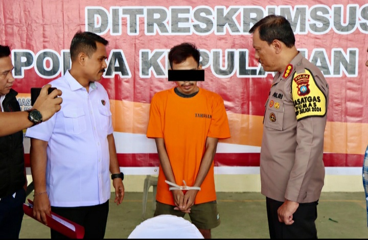 “Subdit V Siber Ditreskrimsus Polda Kepri, dalam kegiatan _patroli cyber_ rutin pada tanggal 24 November 2024, menemukan sebuah postingan di akun Facebook @Rian Hidayat yang diduga melanggar Undang-Undang ITE. Postingan tersebut berisi manipulasi foto pejabat Polri dengan keterangan yang tidak sesuai dengan fakta. Hasil penyelidikan menunjukkan bahwa pelaku menggunakan akun Facebook ‘Rian Hidayat’ untuk mengunggah foto Kapolda Kepri secara tidak sah. Pelaku menambahkan keterangan palsu pada foto tersebut, yaitu klaim bahwa dirinya adalah seorang duda dengan harta yang melimpah, dengan tujuan untuk menarik perhatian. Setelah dilakukan penyelidikan lebih lanjut, tim berhasil mengidentifikasi dan menangkap tersangka RH di Kota Serang, Banten. Alat yang digunakan oleh tersangka adalah ponsel Infinix Hot 40 Pro,” jelas Dirreskrimsus Polda Kepri Kombes. Pol. Putu Yudha Prawira, S.I.K., M.H.