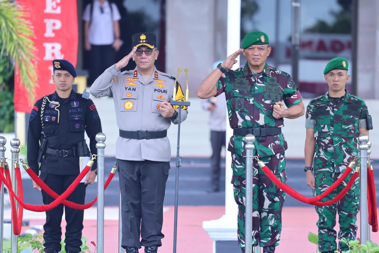cMczone.com, Batam – Dalam rangka pengamanan Natal 2024 dan Tahun Baru 2025, Polda Kepri menggelar Apel Gelar Pasukan Operasi Lilin Seligi 2024 dan selaku pimpinan Apel Kapolda Kepri Irjen. Pol. Drs. Yan Fitri Halimansyah, M.H., didampingi Danrem 033/WP Brigjen TNI Bambang Herqutanto, M.Han, Forkopimda Provinsi Kepri, Pejabat Utama Polda Kepri serta peserta apel gelar pasukan operasi seligi 2024 di Lapangan Bhayangkara Mapolda Kepri. Jumat (20/12/24).