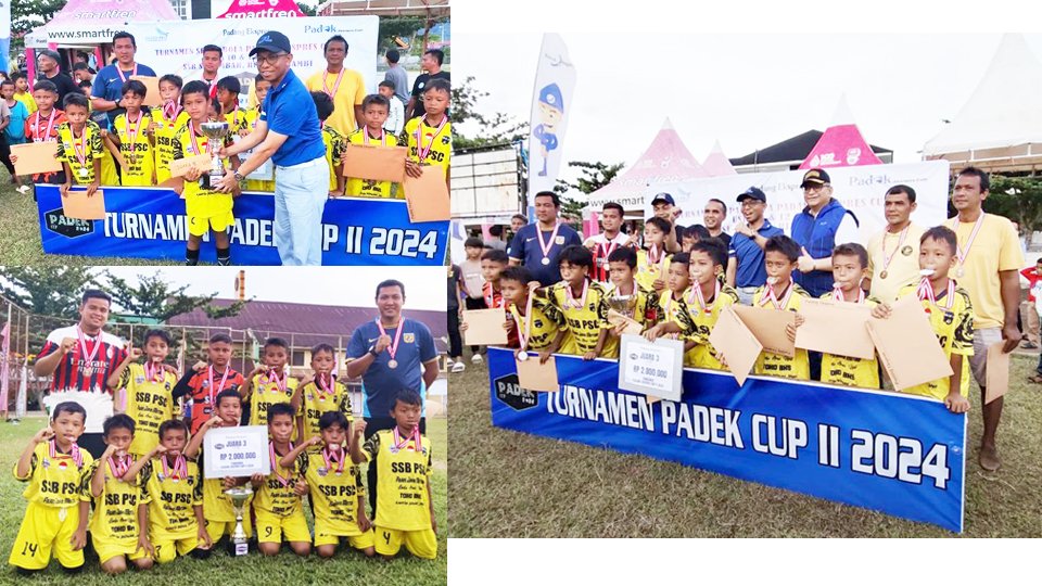 cMczone.com – Sekolah Sepak Bola (SSB) Persatuan Sepakbola Cimparuh (PSC) Kota Pariaman Raih Juara III di Turnament Padek CUP II 2024. Turnamen yang mempertandingkan kategori kelompok umur (KU) 10 dan 12 tahun ini, diikuti oleh 77 tim Sekolah Sepak Bola (SSB) dari tiga provinsi, yakni Sumatera Barat (Sumbar), Riau, dan Jambi.