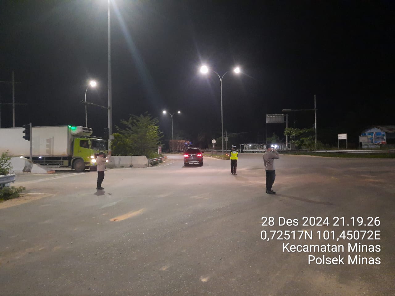 Sebanyak 6 personel Polsek Minas dikerahkan untuk menjaga kelancaran arus lalu lintas di lokasi tersebut. Kegiatan ini difokuskan pada jalan lintas Sumatra, khususnya di simpang Exit Tol KM.28 menuju Simpang Perawang, Kelurahan Minas Jaya, Kecamatan Minas, Kabupaten Siak.