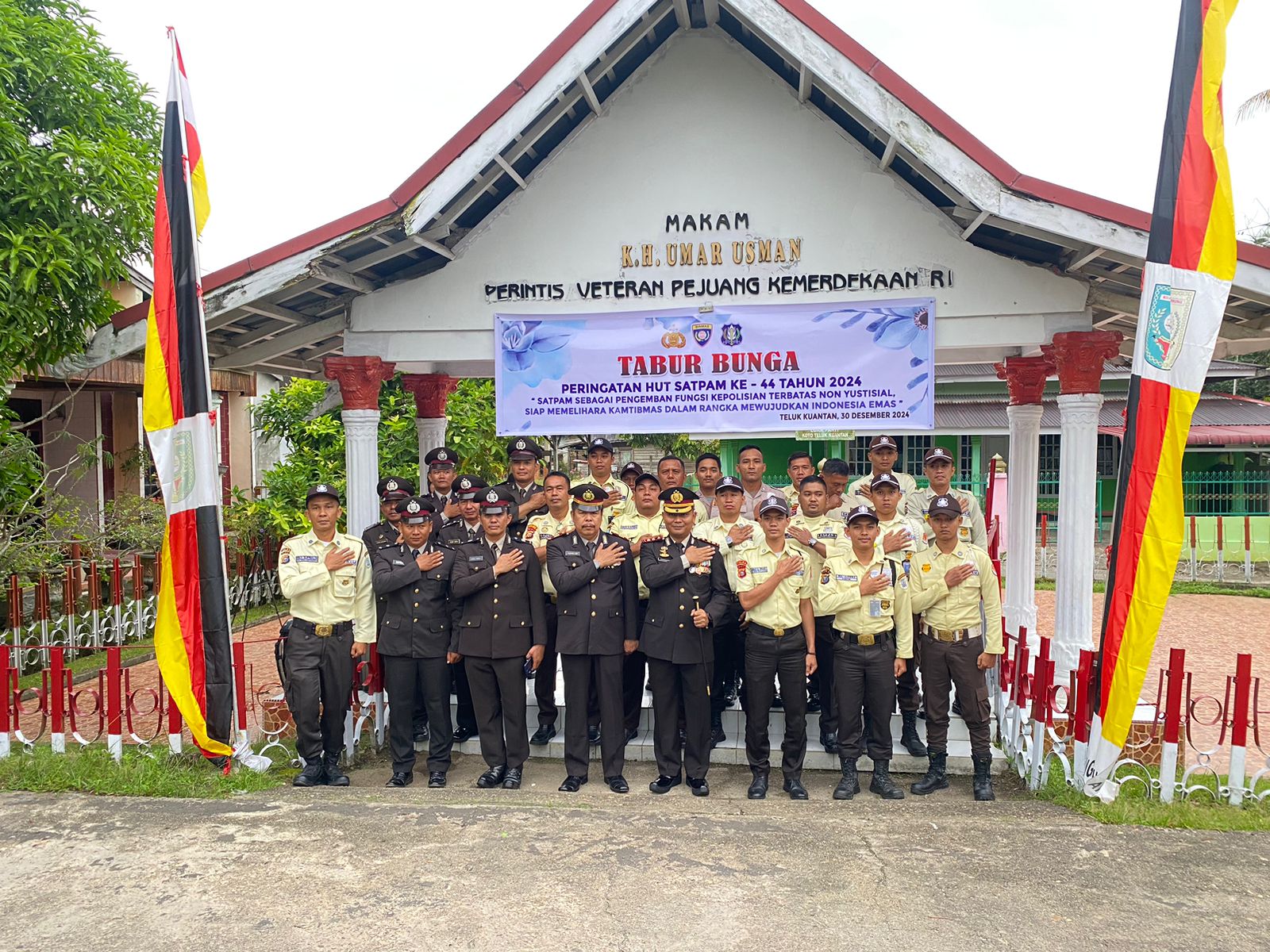 cMczone.com, KUANTANSINGINGI,– Dalam rangka memperingati Hari Ulang Tahun (HUT) Satuan Pengamanan (Satpam) ke-44 tahun 2024, Polres Kuantan Singingi (Kuansing) melaksanakan serangkaian kegiatan yang meliputi upacara tabur bunga di makam pahlawan, penyerahan bantuan sosial ke rumah ibadah, serta kegiatan donor darah. Acara ini berlangsung pada Senin (30/12/2024), dimulai pukul 07.30 WIB dan berakhir pada pukul 10.30 WIB dengan situasi yang aman dan kondusif.