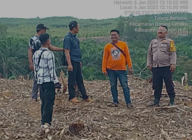 cMczone.com, Indragiri Hulu-Kepolisian Sektor atau POLSEK Kecamatan Rakit Kulim, Kabupaten Indragiri Hulu, Riau, terjun langsung ke lokasi permasalahan konflik yang berada di Desa Talang Tujuh Buah Tangga, untuk melakukan pertemuan terkait pengrusakan tanaman Kelapa Sawit milik masyarakat atau pun milik Kelompok Tani Talang Permai di Desa Talang Tujuh Buah Tangga,,Senin 06Januari 2025, yang dilakukan oleh PT. Bukit Betabuh Sei Indah (BBSI).
